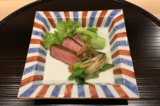 【睦月の強肴】 睦月の一夜より強肴 近江牛と九条葱。 きめ細かな霜降りの旨みと、九条葱のやわらかな甘みと香り。 滋味深い脂がほどけ、冬の夜にふさわしい力強さが広がります。 近江の恵みと、京の香味。土地と土地が響き合う、華…