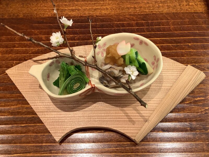 京都 懐石料理|春の先付 蛤と山菜|祇園 華舞